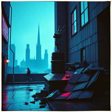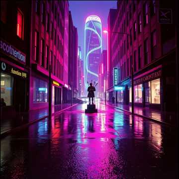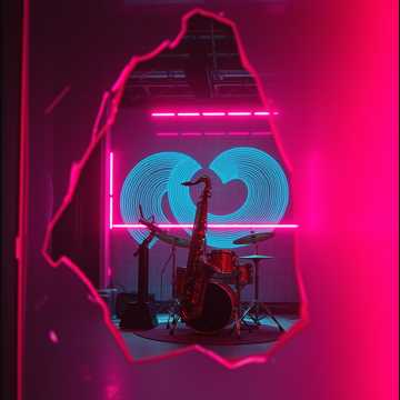 120bpm, loud drums, instrumental, cyberpunk, jazz, dark, post-industrial, noctur, bass boosted, destroyed speakers, depressive, reverb, concert hall, saxophone, субгармонизированный