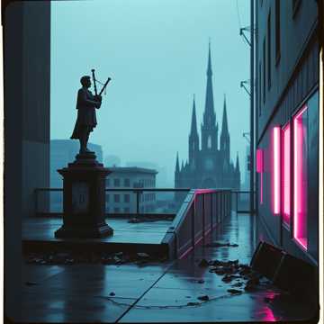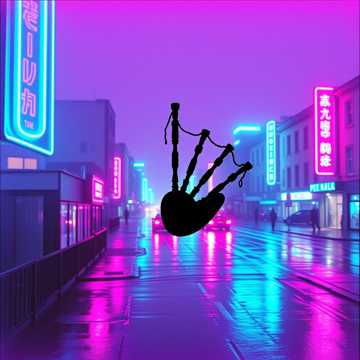 44bpm, bagpipes, scotland, extremely sad, loud drums, syncopated drums, dark synthwave, fat sound, instrumental, cyberpunk, dark, post-industrial, noctur, bass boosted, destroyed speakers, depressive, reverb, various tempo