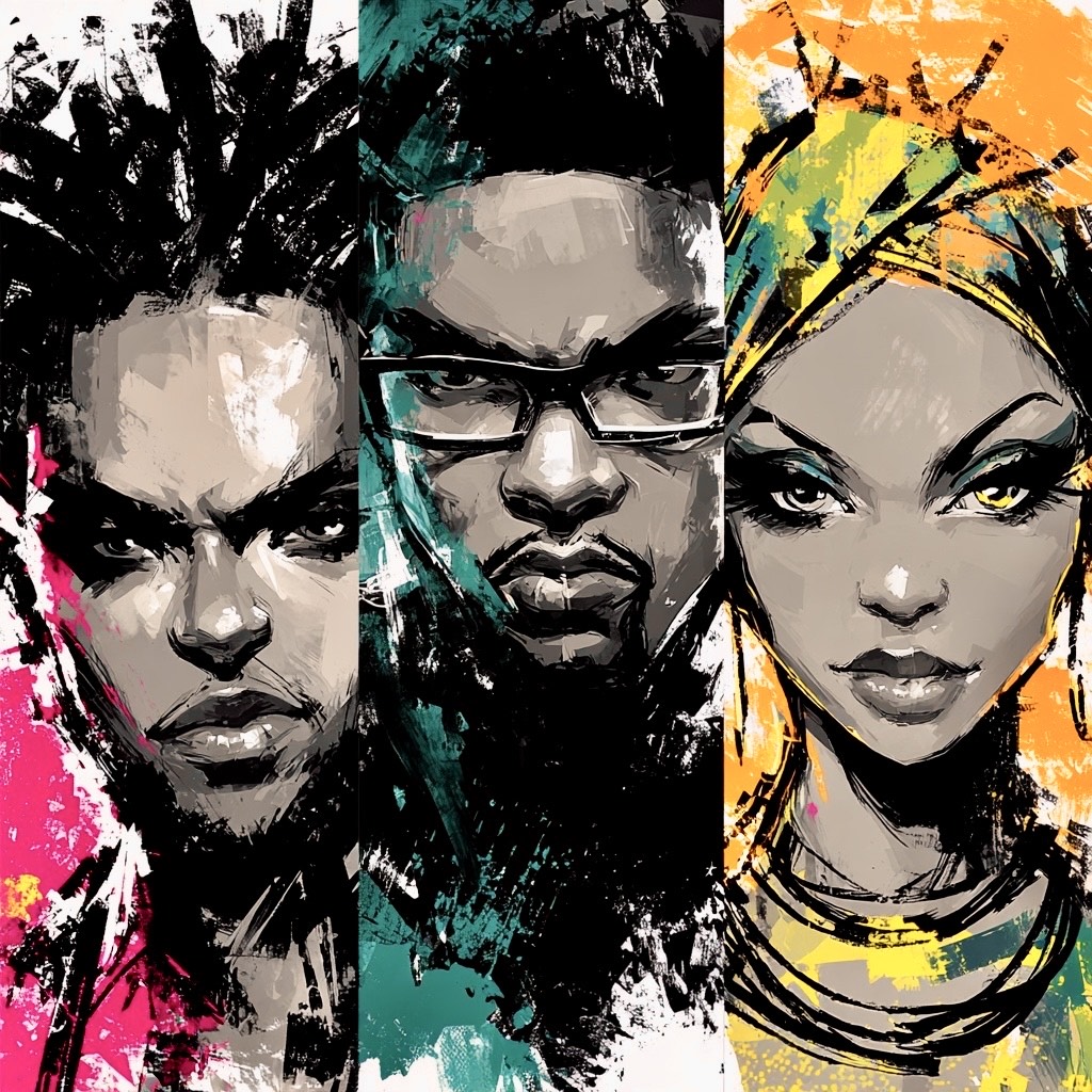 Dark, cinematic intro, Piano and low strings, Boom-bap foundation with reggaeton undercurrent, BASS: Warm female-style reggae bassline, GUITAR: Sparse offbeat, delayed and gritty, Mid-register, authoritative lead, Gritty group chants, Soulful backing vocals, High-energy double-time verses, Conversational yet confrontational, CHORUS: Anthemic blend of chant, hymn, and rap, FEEL: Raw, Confessional, Uplifting, Revolutionary, Mid-to-fast, Heavy low end
