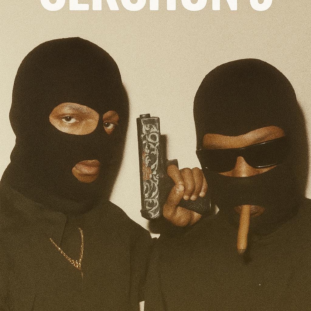 Old school Memphis-style Southern rap beat with gritty lo-fi textures, Cowbell rhythm drives the track, layered over distorted 808s that hit like a trunk full of subs, Dark, bouncy, and minimal with chopped vocal samples, mocking laughter, and eerie percussion, The mix should sound raw and unpolished, like a dubbed-out cassette from the ‘90s underground, Two Southern rappers with aggressive Tennessee drawls trade grimy, street-heavy bars over the beat, The vibe is menacing, chaotic, and playful