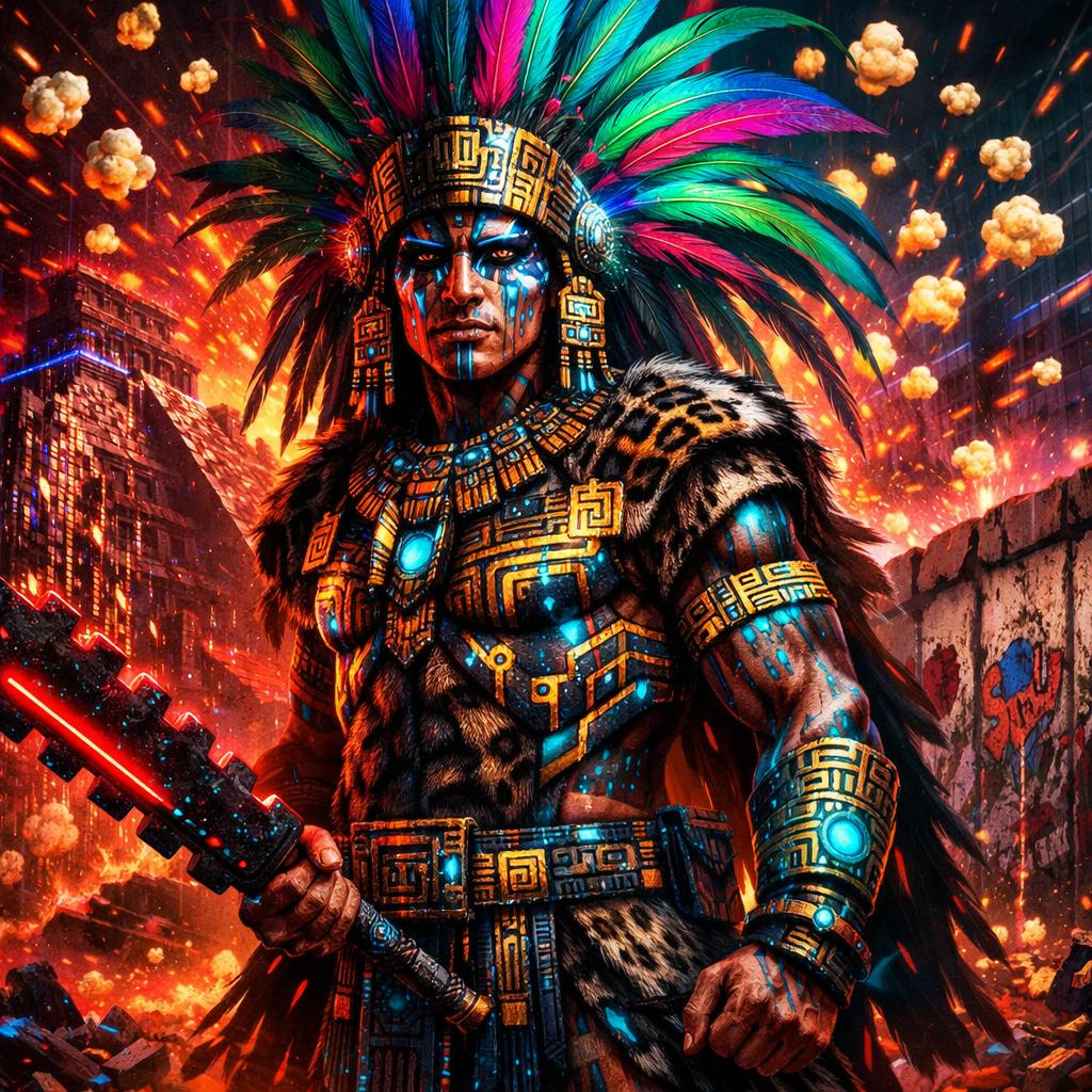 Raw hard techno schranz, 145-150 BPM, Mexican cartel narrative meets Aztec mysticism, distorted 303 acid bass, industrial drums, aggressive rap vocals, DJ scratching, speed changes, hypnotic chants, underground rave energy, no commercial polish -