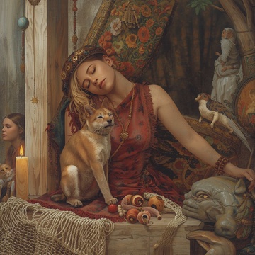 Create a calm yet hypnotic trip-hop fusion in D♭ minor, 90 BPM (half-time ~72), Whispered baritone lead with ASMR breath — emotional but steady, Reversed female harmonies (French/Russian/English) drift like memory ghosts, 808 kick and brushed snare form a lazy heartbeat; upright bass glides under tape warmth, Finger-plucked bağlama and hollow-body guitar trade gentle phrases in spring reverb, Detuned Juno-106 pads and soft VHS crackle color the air, Chords hover on add9 / 11th shapes, unresolved yet serene, Pre-chorus swells with taiko pulse and analog arps, Chorus blooms wider — deeper bass, lush harmonies, quiet dominance, Hook: “Still calm when the storm remembers me, ” Bridge shifts folk-noir: whispered chant like prayer, candle-lit intimacy, Outro fades in reversed breath and heartbeat kick, Mood: velvet strength, sacred calm, meditative focus, Palette: indigo haze, chrome dust, candlelight gold, Theme: power in silence, beauty in patience