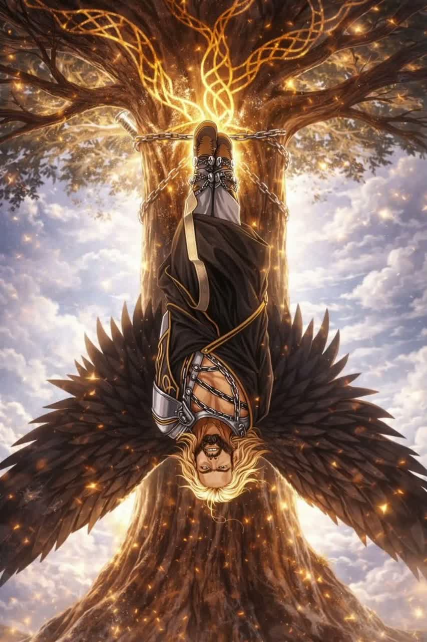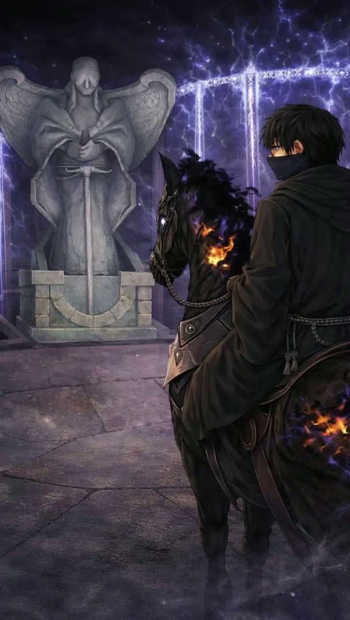 A dark fantasy orchestral piece opens with low strings and deep drones, distant bells echoing in heavy reverb, A mythic solo vocal weaves through as low brass and measured percussion add suspense, Choral swells rise for revelations, harmonies shadowed and tense, Percussion becomes more acute for the Wings of Rage, then the arrangement thins to sparse textures, closing unresolved and foreboding