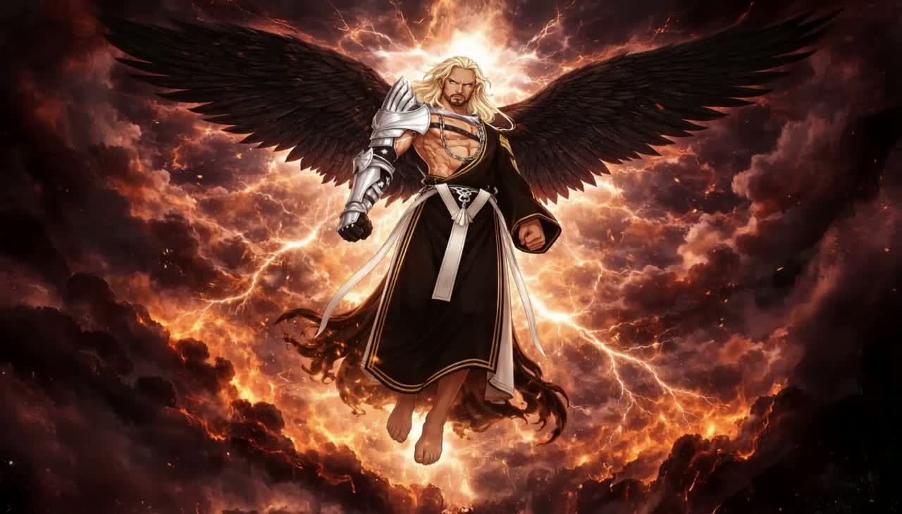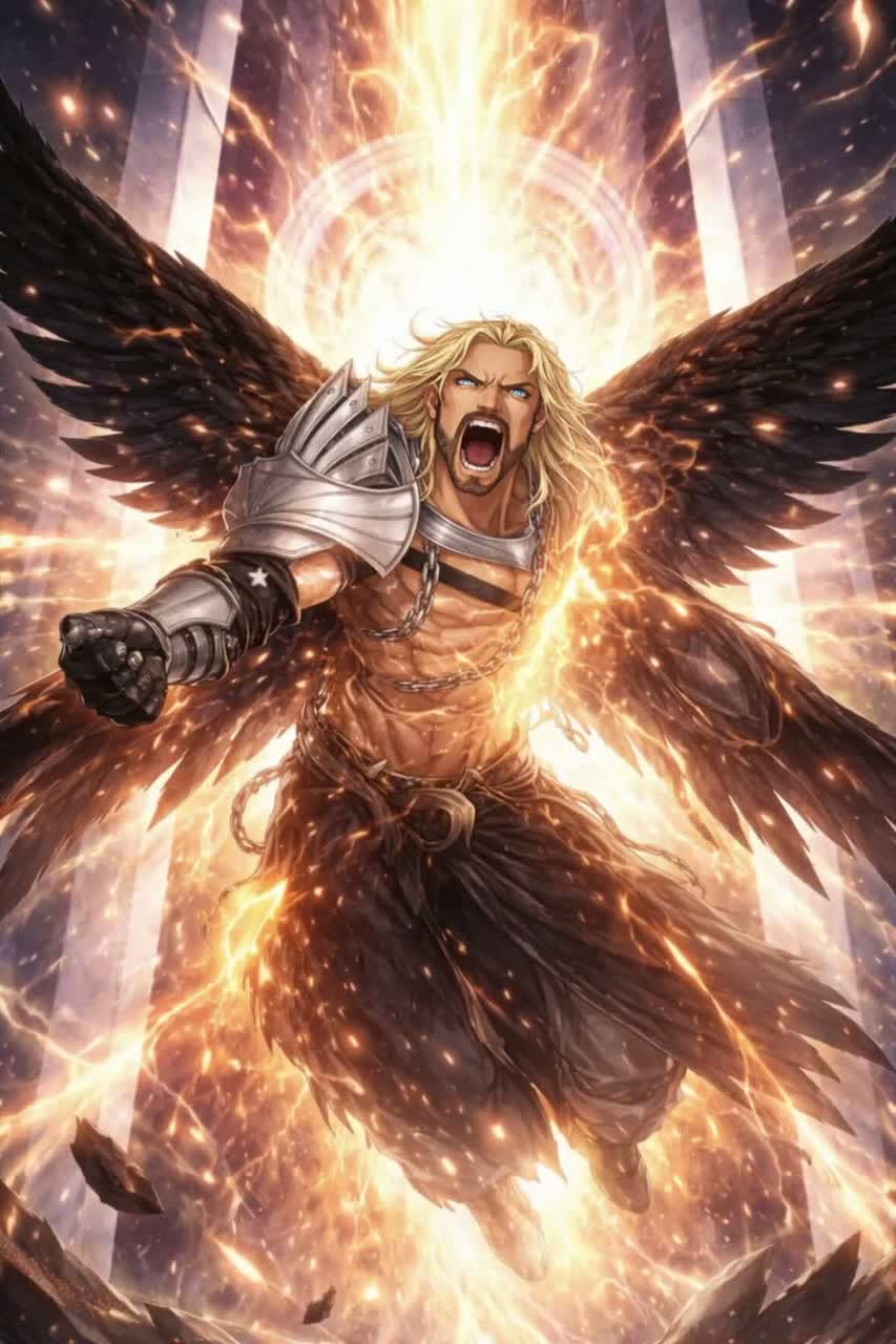 High-speed epic orchestral dark fantasy song inspired by the pacing and energy of “Flight of Aonbharr” from Mabinogi, The track depicts the rescue of Morrighan within Falias as Nuadha traps her using the city’s erg, The song moves constantly, driven by rapid strings, aggressive percussion, and soaring choir, representing aerial combat, collapsing Stonehenge pillars, and the urgency of breaking Nuadha’s barrier, The narrative follows the Milletian opening the gate to Falias with the Brionac, racing through the city while gods clash overhead, Morrighan’s restrained power manifests as sacred darkness, while Nuadha dominates the sky with absolute authority, Each major character delivers a single defining sung line at peak intensity: Eabha as cosmic witness, Morrighan as bound goddess, Nuadha as cold king, and the Milletian delivering the iconic refusal of godhood, The song never slows until the barrier breaks, It ends suspended in tension, signaling that the final battle is inevitable