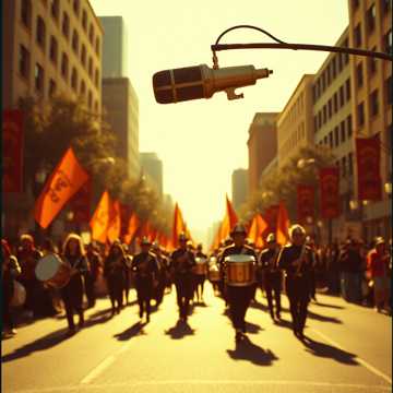 clipped bright commanding male vocals, classic show tune and march, embodying nostalgic American band music with big, brassy, fanfare-style sound, perfect for marching bands, concert bands, and orchestral performances, celebrating small-town Americana and the thrill of a parade, with its cheerful, celebratory feel