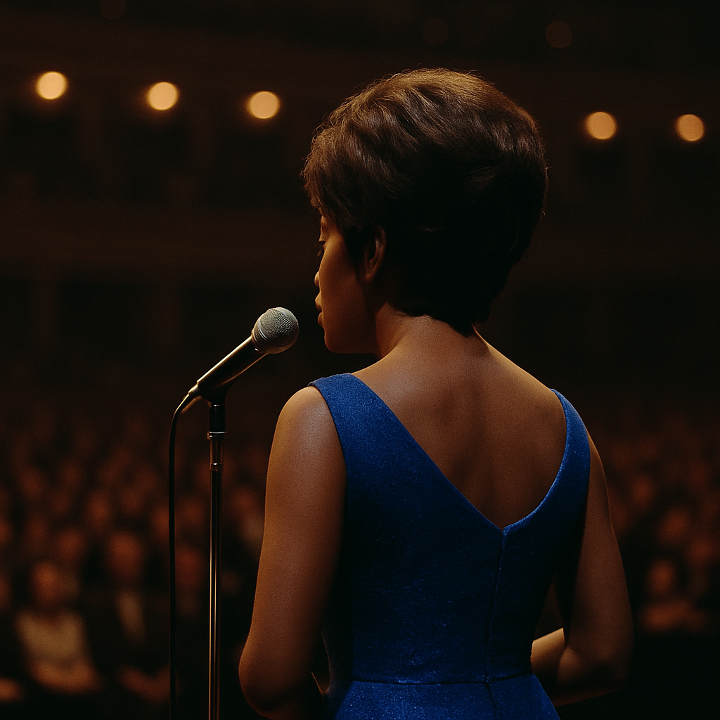 This 1960s Chanteuse-inspired vintage Jazz, lounge, soul, Blues, Motown, cinematic song opens with elegant piano arpeggios and lush strings, Smooth female vocals glide over gentle brushed drums, walking bass, and subtle brass, Soft backing harmonies lift each chorus, The orchestration is concise and graceful, focusing on warm, expressive timbres, The final chorus layers voices and strings, repeating gently before a gradual, lingering fade-out for a timeless, intimate feel