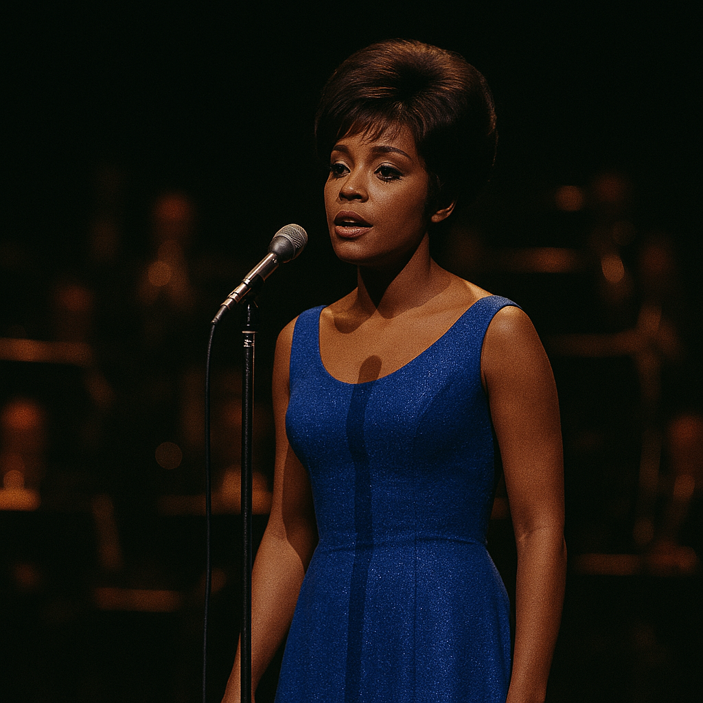 A lush, romantic melodic song in a mid 1960s pop-soul style, with elegant orchestration featuring piano, strings, light brass, and gentle percussion, The vocal should be a female lead, smooth and expressive, with a warm midrange tone, soulful yet graceful, carrying subtle vibrato and emotional nuance, Backing vocals should be soft, blended harmonies that lift the choruses, Instrumentation should feature orchestral strings, gentle brushed drums, piano arpeggios, light brass flourishes, and bass with a walking yet restrained feel, The arrangement should be concise, graceful, and radio-friendly, focusing on intimacy, longing, and timeless romance, The final chorus should repeat softly and gradually fade out, with layered vocals and strings lingering into the close, like a classic 1965 radio ballad