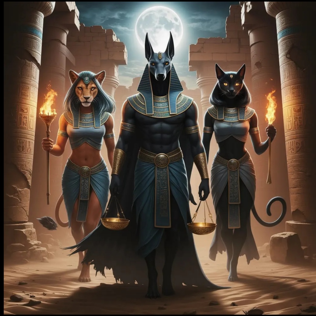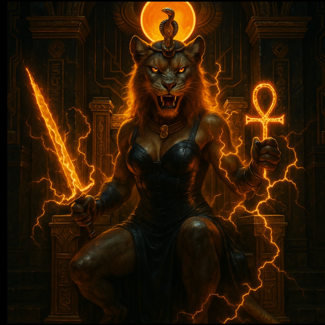 Heavy Egyptian metal, Powerful Deep bass male vocal, Keep voice deep, warm, and ritualistic at all times, Echos, Use the same ultra-low, growled, gothic male voice throughout the entire song, No switching tone, No higher pitch, Maintain the exact vocal tone of the intro and outro, distorted guitars, thunderous bass, epic soaring guitar solos, war drums, Arabic male melisma, 3D Audio, ritualistic darkness, gothic energy, ancient power, slow burn, Growls, Gothic textures, ancient motifs, and an underworld mood build a hypnotic, immersive 3D atmosphere, Egypt, low bass, foreboding, intensity, driving drums, dolby surround, include ad libs and vocal interplay