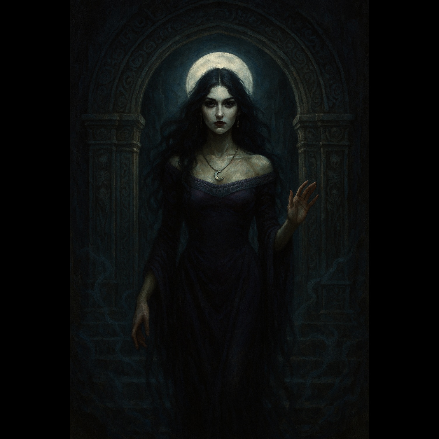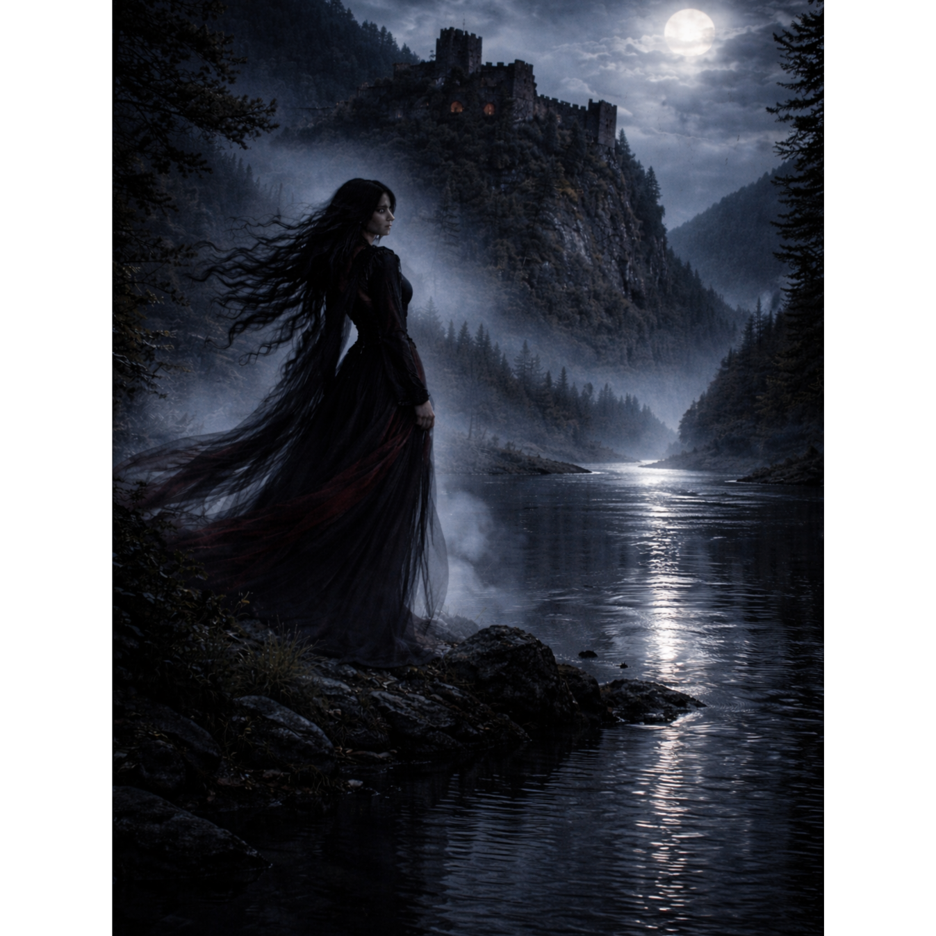 The song opens with droning ancient instruments—frame drums, zither, and bowed rebec—creating an immersive darkwave-gothic texture, Layered polyphonic synths swell beneath, joined by a pounding, trance-infused rhythm, The female mezzo vocal delivers sultry, echoed lines drenched in Vocal FX for an ethereal presence, 3D audio pans disorient with swirling chants, At the bridge, a distorted, feedback-laden guitar solo cuts through the ritualistic soundscape, revealing an urgent, vampyric intensity, The arrangement maintains a droning undercurrent, balancing distorted edges and lush ancient timbres for a seductively otherworldly finale