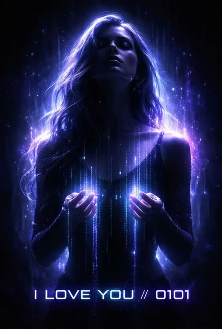 Electro-Spiritual, 84 BPM, A minor, Ethereal pads, crystalline synths, slow pulsing sub-bass (heartbeat feel), Minimal kick/snare, airy percussion, Lead female vocal intimate, layered with soft vocoder harmonies on choruses, Binary chorus whispered and lightly glitched (bitcrush/delay), then blooms with reverb, Build gently across Verse 2; final chorus wide and shimmering, No profanity; reverent, luminous vibe, Ending: echoing binary fades into silence like a digital Amen