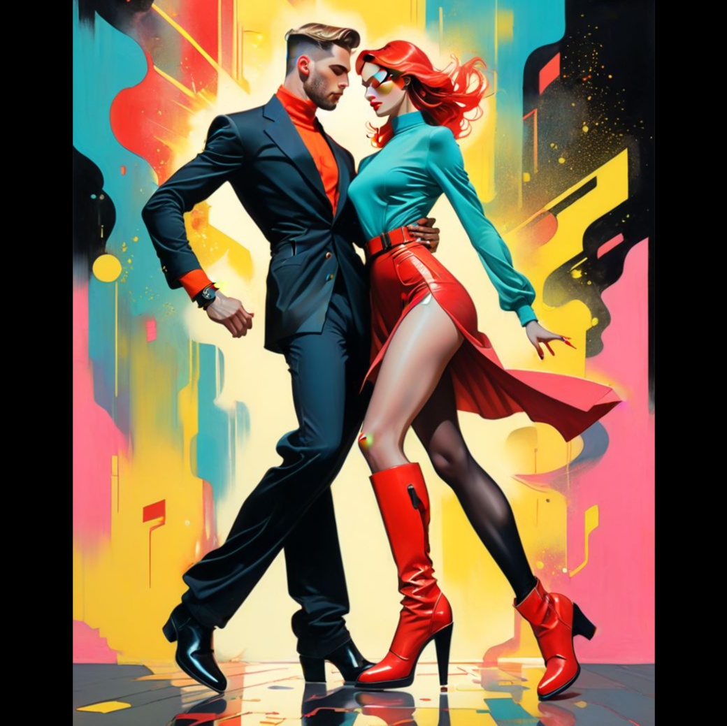 synth pop dance, Ibiza nuwave, multiplex cyberpunk, vital pad, emotional aura, creative play, mixed-gender trip-hop