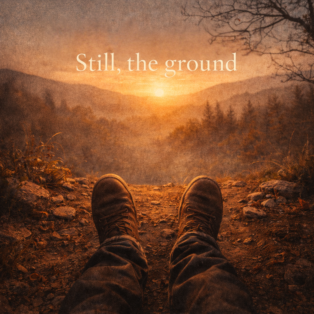 At 72 BPM, fingerpicked acoustic guitar sets a spacious, deliberate pace, with warm upright bass anchoring gently beneath, Brushed drums pulse subtly, more felt than heard, Sparse fiddle weaves calm lines, Banjo and mandolin offer restrained texture, Soft accordion breathes warmth in choruses, Vocals are close-mic’d, intimate, and calm, with minimal, communal backing, The arrangement stays organic, meditative, quietly radiant, and dynamic shifts are gradual—built on presence, repetition, and restraint