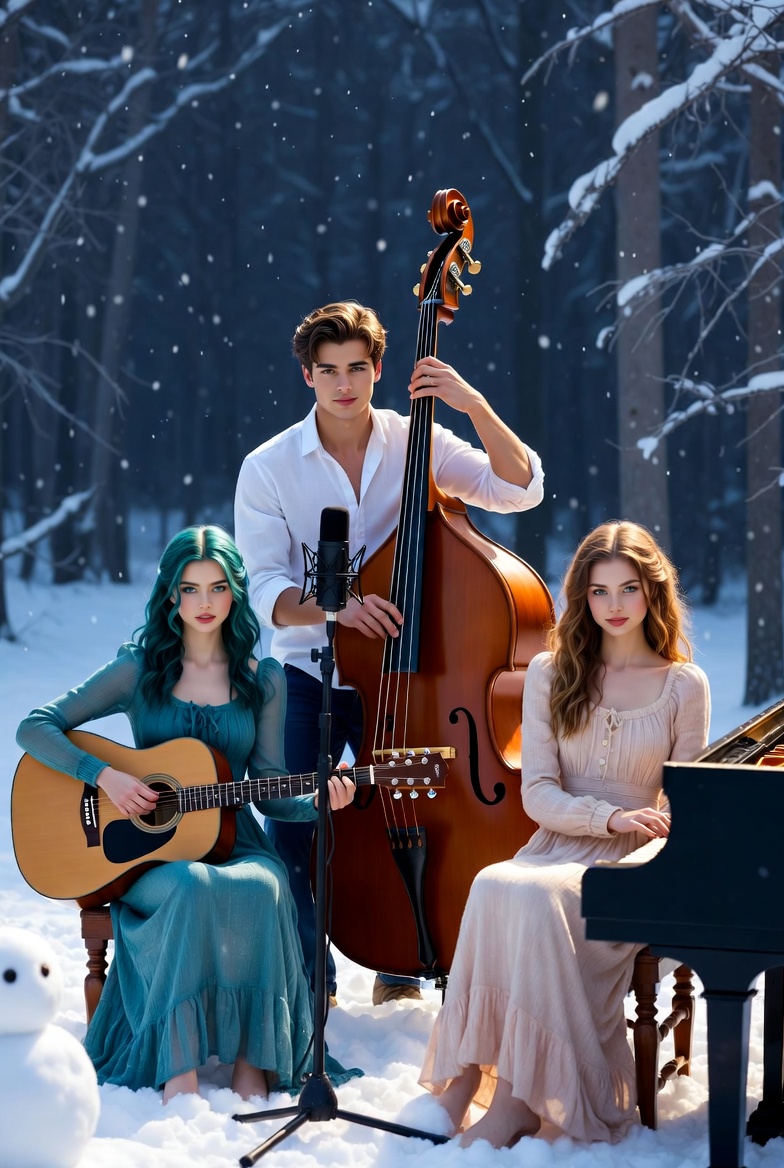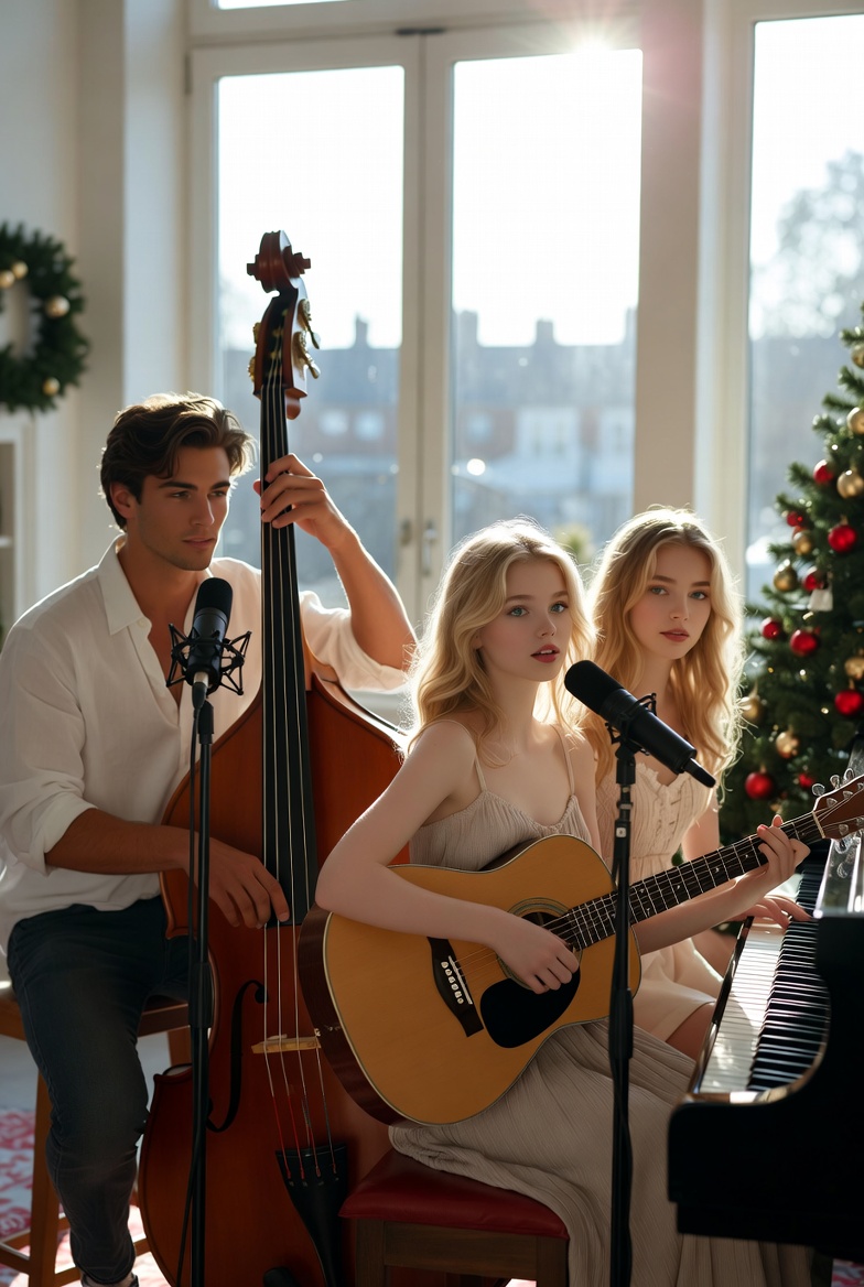 Neo-Acoustic Folk, Christmas Ballad, Intimate, Warm, Slow, Upright Bass, Piano, Male & Female Duet, Trio Harmony, 72 BPM