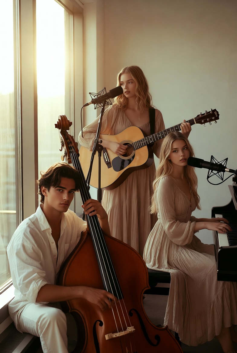 Neo-Acoustic Folk, Chamber Pop, Intimate, Trio Harmony, Emotional, Warm, BPM 74