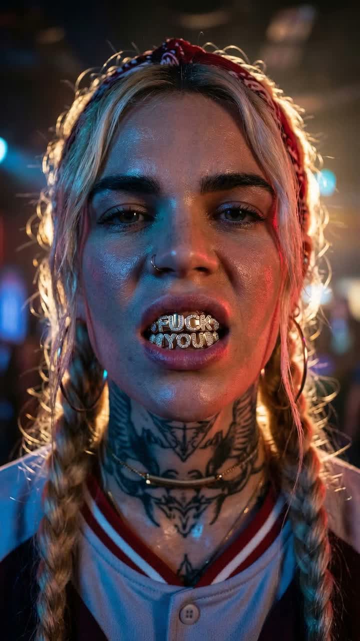 [Is_MAX_MODE: MAX] [QUALITY: MAX] [REALISM: MAX] [REAL_INSTRUMENTS: TRUE], Bpm 115, Studio Mix, Perfect Equalizer, very angry female vocals with emphasis, punchy, shuffled, Raw, brutal, This Circuit Bending aggressive 90s east la boom bap hip hop track kicks off with glitchy, mangled synths, laying twisted textures over a thick, swinging drum groove, Percussive samples and wonky bass lines weave through, while sharp, syncopated vocals ride the beat, accenting the rhythmic chaos, The whole song has a steady build-up, adding to the intensity continuesly