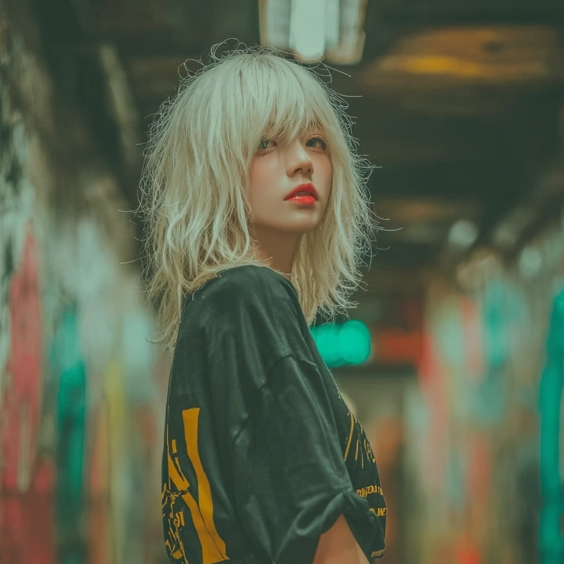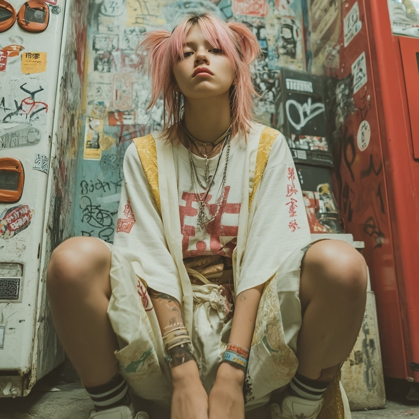 A cute glitchy and hip-hop track with a minimalist lo-fi beat and distorted textures, cute female whisper vocals rapping in Japanese, The lyrics are sarcastic and critical, exposing fake originality and cliché AI-generated phrases, Moody, dark, and stylish, Tempo around 85-90 BPM, No chorus melody, just steady rhythmic flow with occasional glitch breaks