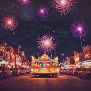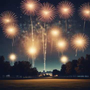 Epic 80s arena rock anthem with driving electric guitars, soaring riffs, and punchy, energetic drums, Synth layers add atmospheric sparkle, blending heroic rock energy with cinematic wonder, Bass lines are bold and rhythmic, giving a sense of momentum and grandeur, Vocals are powerful and emotive, alternating between intimate, reflective verses and soaring, anthemic choruses, Backing harmonies emphasize key lines for dramatic impact, Dynamic build-ups and climactic guitar solos evoke awe and excitement, perfect for a fireworks finale or night-sky spectacle, Mood conveys triumph, dreams, and magic, combining heroic energy with wonder-filled cinematic moments, Designed to inspire, thrill, and elevate listeners, evoking both nostalgia and contemporary excitement