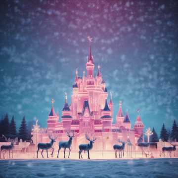 A massive, polished 80s Arena Rock and Power Pop Christmas anthem composed for a Disney theme park parade, The track features a huge, "Wall of Sound" production (think Journey or Foreigner) with sparkling digital synthesizers, chiming 12-string guitars, and a driving mid-tempo beat (124 BPM) featuring loud sleigh bells mixed with a gated-reverb snare, The vocals are crystal clear, joyous, and soaring, supported by a massive choir in the chorus, The melody is triumphant and emotional, evoking the feeling of "The Most Wonderful Time of the Year, " The lyrics celebrate the specific magic of spending the holidays in the kingdom, with themes of lights, snow, and togetherness, The ending is a euphoric, confetti-filled celebration