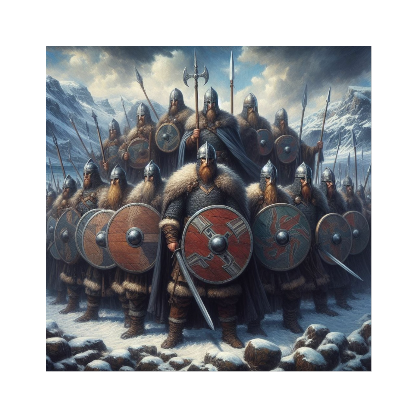 Tempo: 130 bpm, Key: D minor, heavy orchestral battlefield theme, Intro opens with a single Viking war horn echoing across a dark battlefield, slowly joined by pounding war drums (deep toms, taikos), then swelling violins and cellos, Verse sections carry sharp staccato strings, layered with heavy percussive hits, echo chants in the background, Chorus explodes with a wall of sound: full string orchestra, choir chants, massive war drums, layered brass horns, Energy is high, motivational, relentless, Bridge strips down to drums and low horns, then builds back with rising string arpeggios and triumphant choir, Outro fades with the horn returning, echoing as if after battle, Vocals are delivered in a commanding, chant-like, war-leader tone, building intensity each chorus