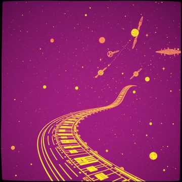 A pulsing sparkling synth opens with a minor melody, gradually joined by deep congas, and crisp snare accents, Flowing arpa flourishes glide overhead, while low vocal chants build into dense harmonies, Sparse electric bass grounds the groove, punctuated by tight, punchy brass hits that heighten tension and momentum