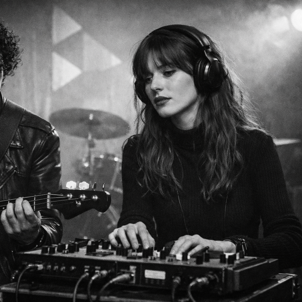 Propulsive motorik drums drive the 80s Krautrock-inspired intro, layered with pulsing analog synths and jagged new wave guitar hits, The energy crescendos into angular, punk-edged basslines, A relentless, extended instrumental break brings swirling synth arpeggios, fractured guitar feedback, and syncopated drum fills—momentum never falters, each section urgent and hypnotic, creating an atmosphere of perpetual forward motion