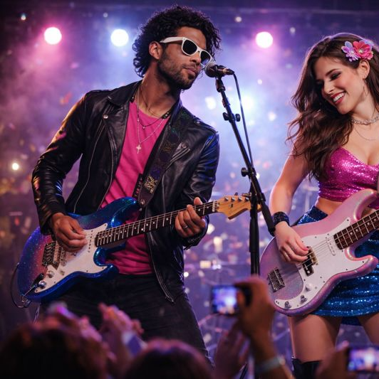 Driving galloping rhythm section, energetic bass and drums, ’80s glam metal anthem, Big distorted electric guitars with crunchy riffs and flashy leads, Driving rock drums, pounding snare, energetic bass, Swaggering, confident male vocal — gritty but melodic, High-energy, arena-ready chorus, Sleazy, rebellious, fun attitude, Classic 1980s hard rock production — loud, glossy, unapologetic
