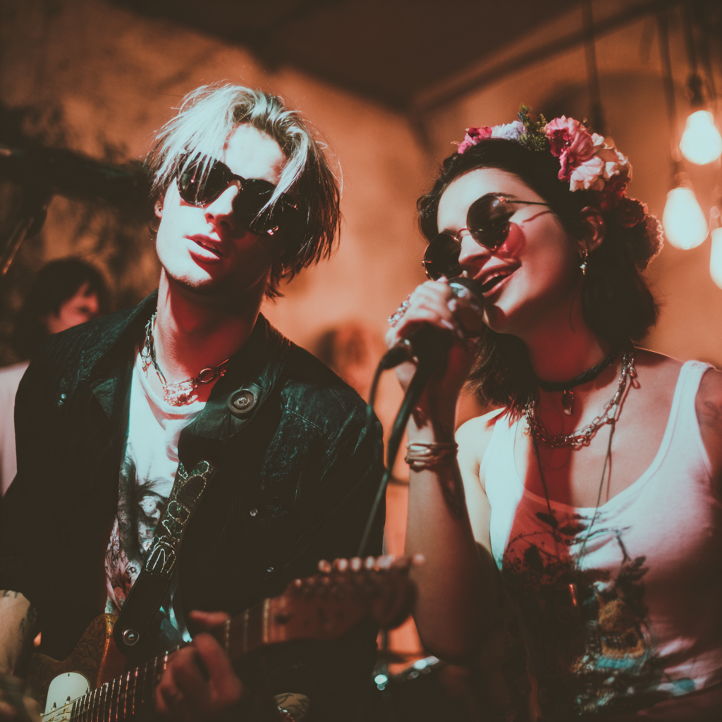 High-energy female-fronted punk rock with a catchy, melodic edge and raw emotional punch, Fast but bouncy tempo, crunchy distorted guitars with simple power-chord hooks, driving bass, and tight, energetic drums, Vocals are fierce, youthful, and expressive — switching between sweet melodic lines and sharp, shouted phrases, Choruses are instantly memorable and sing-along, with gang vocals emphasizing unity and defiance, The mood balances righteous anger with warmth and care — protective rather than destructive, Sound feels rebellious, heartfelt, and empowering, like love turned into noise, Overall vibe: punk with a smile and claws — fun, urgent, emotional, and unapologetically protective