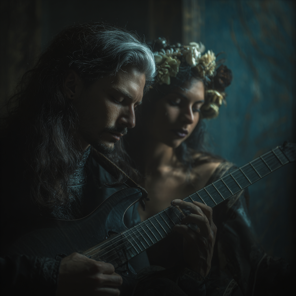 "Heavy metal with a dark, ominous tone, Down-tuned guitars with chunky, aggressive riffs, Mid-tempo pacing, thunderous drums, and distorted bass, Powerful male vocals that alternate between clean intensity and gritty growls, Layers of tension-building instrumental breaks and dynamic shifts, The sound evokes restrained fury — a warning before eruption, Perfect for themes of control, anger, and inner darkness, "