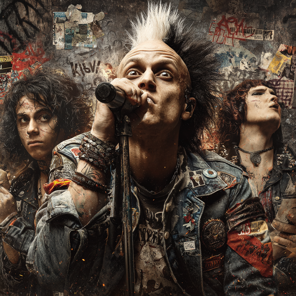 Raw 1970s British punk sound, Snarling, growling electric guitars with heavy distortion, buzzing amps, sloppy edges left in, Fast, aggressive drums — straight-ahead punk beat, crashing cymbals, no finesse, Simple, pounding bass following the guitar, relentless and dirty, Lead vocals: