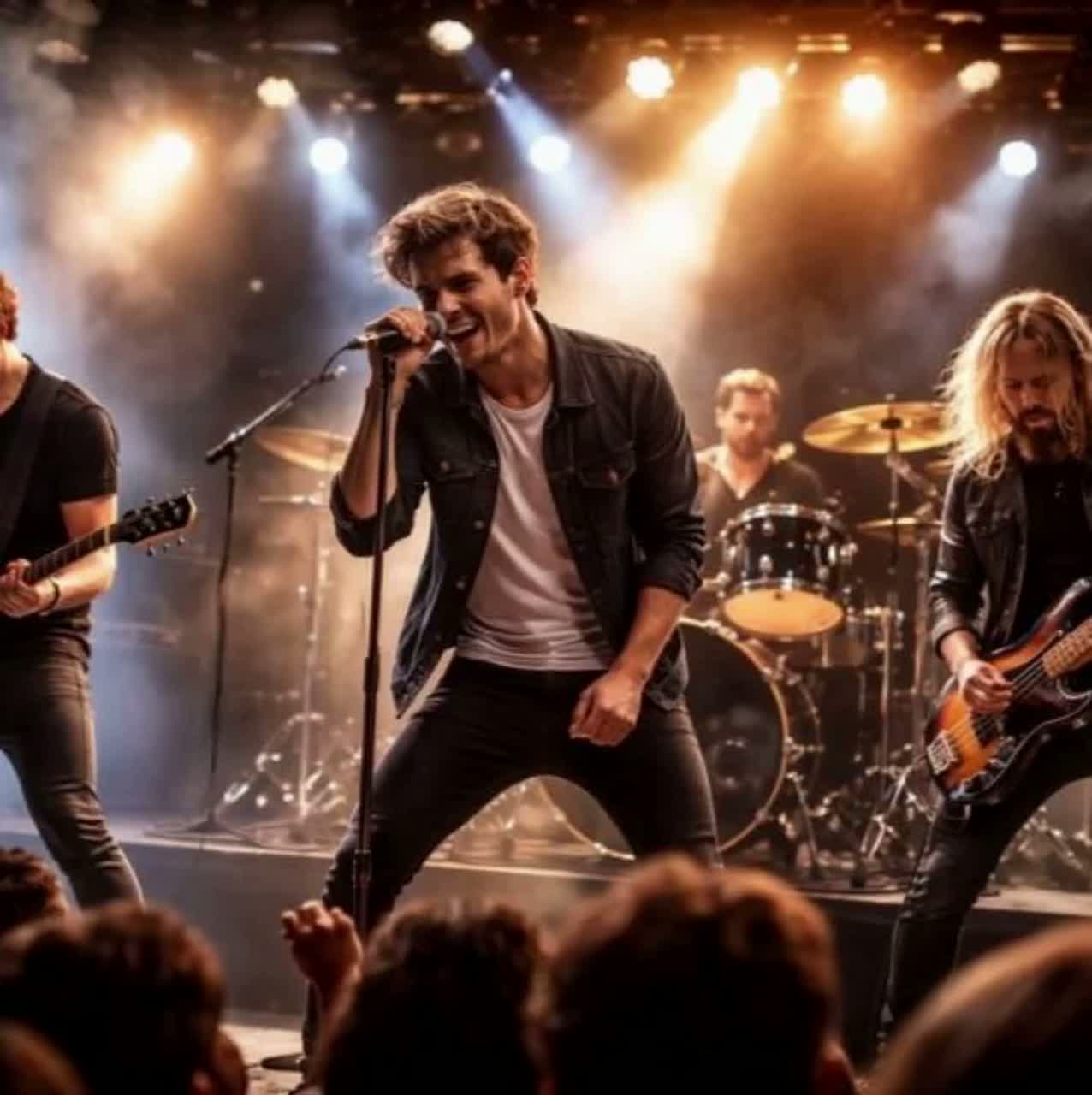 Modern heavy power-pop rock with thick distorted guitars, punchy bass, and tight driving drums, balanced with big melodic hooks and a soaring sing-along chorus, Strong, clear vocals that cut through the mix — gritty in the verses, anthemic in the chorus, Polished modern production with weight and energy, but bright and accessible, Feels powerful, emotional, and uplifting — heavy without losing pop appeal