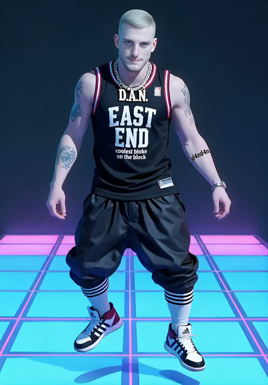Genre: Electronic, Hardstyle, Hard-trance, Original song High-octane high-fidelity production masterpiece, East End Dan male vocals, gang vocals, turntable systems, vynil scratch, stuttering FX, Authentic Roland JP-8080 and Nord Lead 2X supersaw leads, Novation Supernova II textures, Massive polyphony for ultra-smooth filter sweeps and liquid acid leads, Sharp percussive plucks and screechy hardstyle-leaning synth stabs, Rapid-fire melodic trance sequences, Turntable System, TR-303 acid lines, TR-909 reverse gated bass, Driving TR-808 percussion with punchy kicks and crisp hats, Deep modulation, complex multi-effects, wide stereo image, strictly high-energy