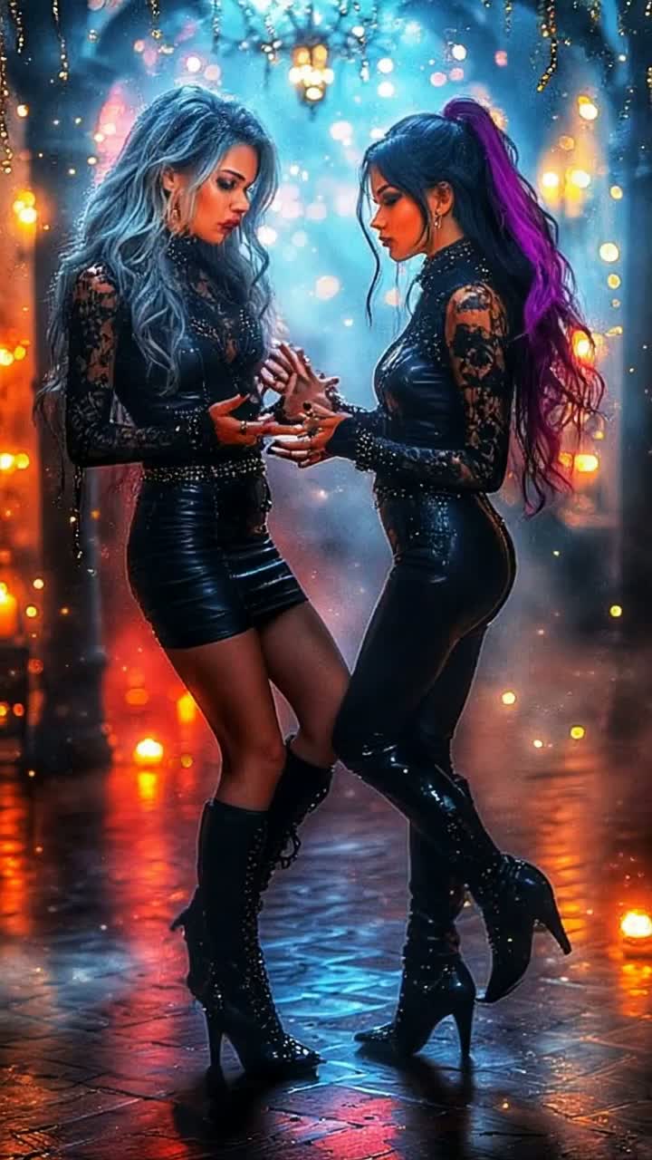 A high-energy, cinematic track blending **alt-rock grit, EDM pulse, and dance-pop hypnotic rhythms**, anchored by a mid-tempo heartbeat-driven groove, Shimmering synths, distorted guitar accents, warm sub-bass, and rhythmic claps create an immersive, electric soundscape, Three female vocalists—one sultry and whispery, one playful and bright, and one smooth and harmonic—interweave in lush, pulsing 808-driven bass, choruses that soar and envelop the listener, EDM-inspired drops and alt-rock tension build cinematic swells that hit with drama, while the intimacy of lead vocals and soft percussive elements maintain a sense of closeness, evoking the irresistible chemistry and magnetic pull of someone you can’t resist on the dance floor