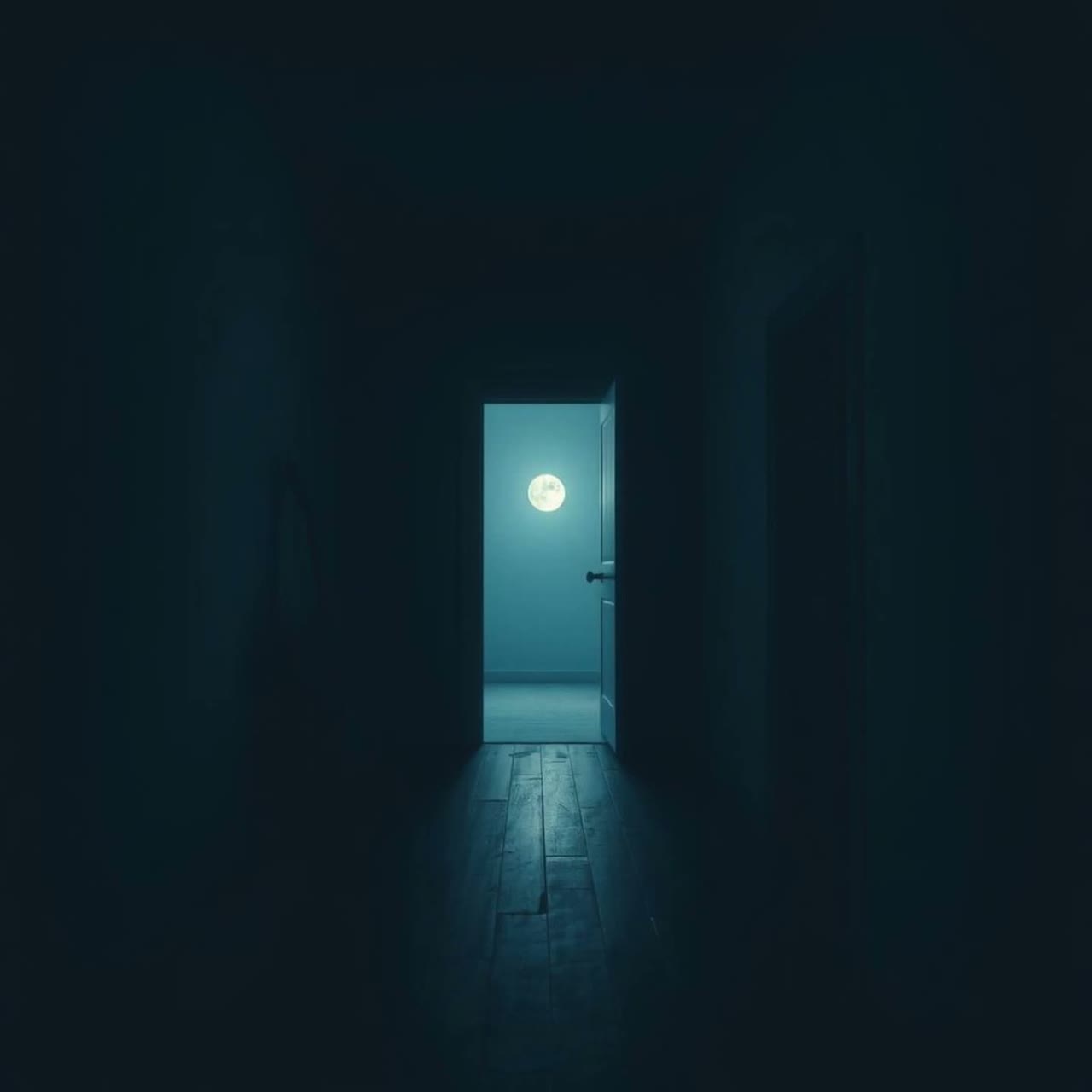 Visual Atmosphere: suitcase on the floor, key on the table, storm-broken glass, horizon torn by lightning fire