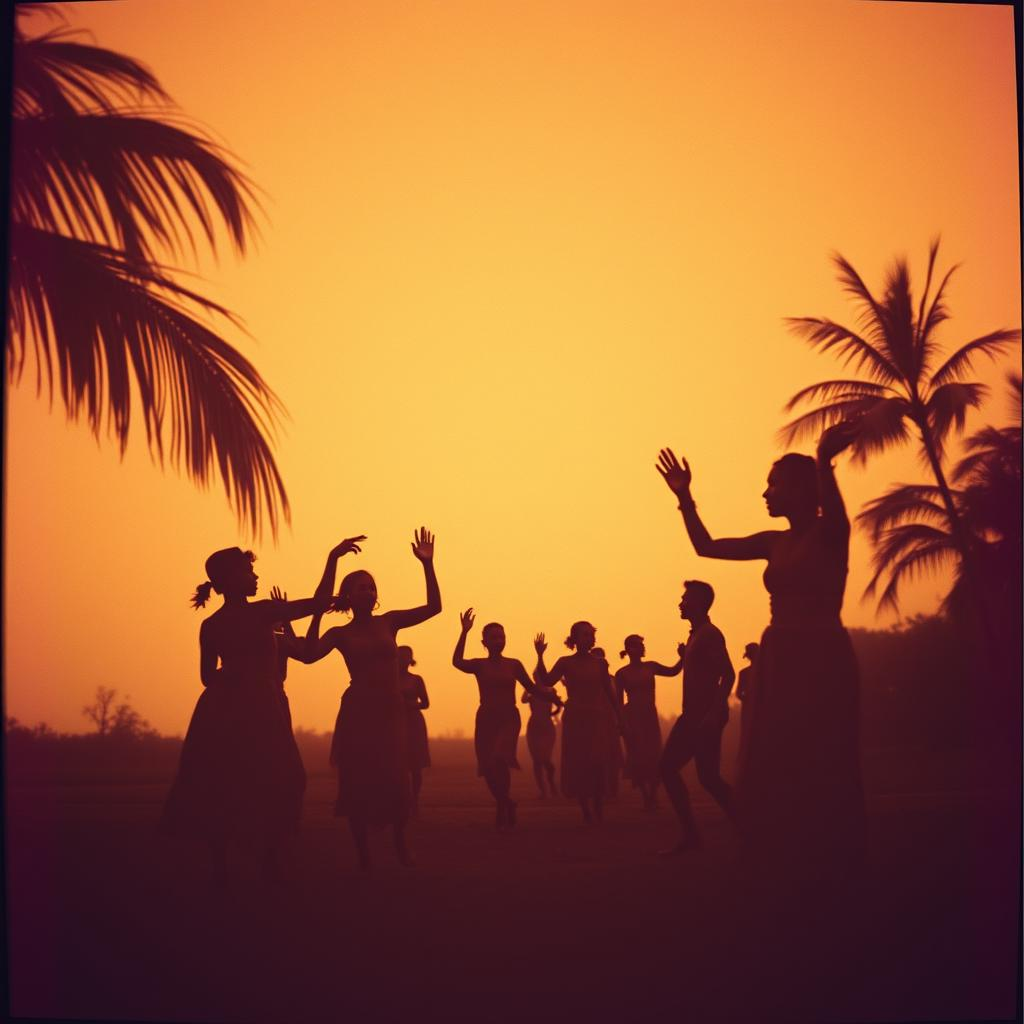 This instrumental beat is influenced by the traditional marabaixo style features deep drums accentuating strong downbeats and lighter upbeats in 2/4, mirroring tambu patterns, synchronized clapping and bamboo rattles enrich the pulsating rhythm, while layered collective humming and singing add harmonic warmth throughout, The atmosphere is ritualistic and serious, but still joyful, There is the sound of feet dragging on the floor, which also follows the rhythm