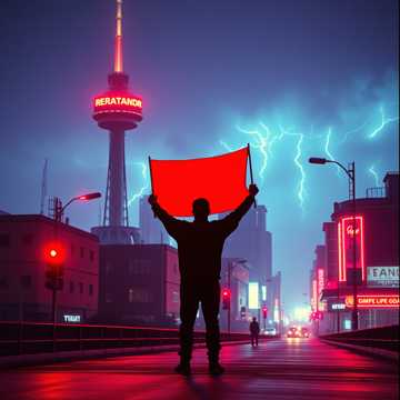 Mood: Urban rebellion, neon city chaos, high adrenaline, fight energy