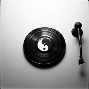 Japanese-English Lo-Fi hip hop, warm vinyl crackle, chill beats, jazzy chords, soft drums, Meditative and philosophical atmosphere, record spinning like Taikyoku symbol