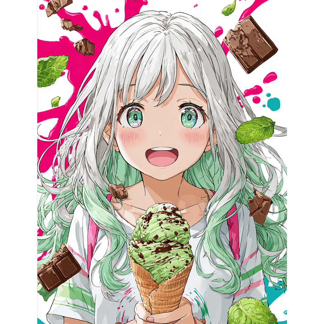 J-Core, Kawaii Speedcore, Denpa Song, BPM 190, high-energy, fast-paced, driving beat, rapid distorted kickdrums, double-time hi-hats, bright pop chord progressions, female vocal with many spoken lines, comedic and cute sound effects, jazz and swing break sections, game-like SE, chaotic and playful arrangement, sudden genre switches, catchy and addictive chorus, playful lyrics about loving choco mint ice cream, full length 3-minute song, extended arrangement, intro, verse 1, chorus, verse 2, chorus, bridge, final chorus, outro, exclude styles: lo-fi, ambient, chill, orchestral soundtrack, cinematic score, ballad, R&B, trap, lo-fi hip hop, synthwave, vaporwave, downtempo, pop rock, acoustic, folk, reggae, dub, bossa nova, country, jazz ballad, ‑exclude styles: lo-fi, ‑ambient, ‑chill, ‑orchestral soundtrack, ‑cinematic score, ‑ballad, ‑R&B, ‑trap, ‑lo-fi hip hop, ‑synthwave, ‑vaporwave, ‑downtempo, ‑pop rock, ‑acoustic, ‑folk, ‑reggae, ‑dub, ‑bossa nova, ‑country, ‑jazz ballad