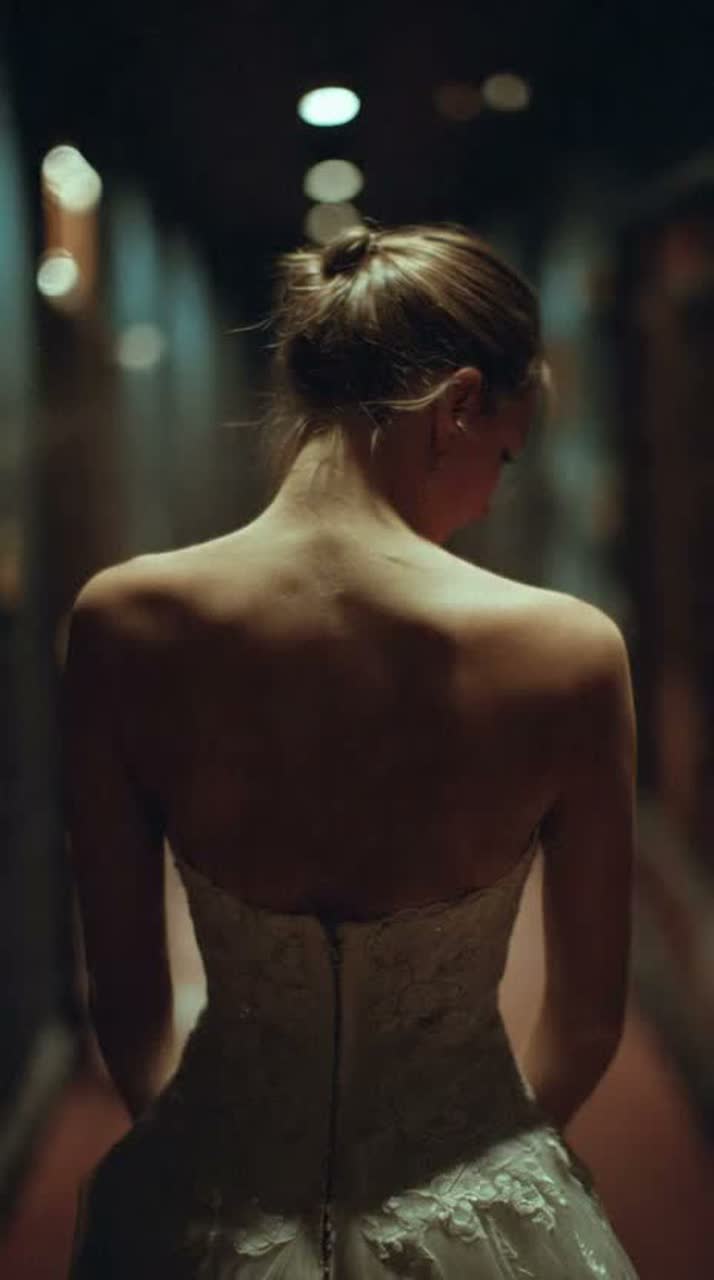 Shadowy darkwave ballad with female vocals; slow, pulsing synth bass and distant toms under a mournful, reverb-drenched piano, Verses stay intimate and close-mic, almost spoken, with ghostly pads and subtle choir swells, Chorus opens into a wide, melancholic hook with echoing backing vocals and a slightly lifted tempo that feels like dancing in a deserted ballroom, Bridge strips back to bare piano and vocal before the final chorus returns with layered harmonies and a lingering, cinematic tail, female vocals, ballad