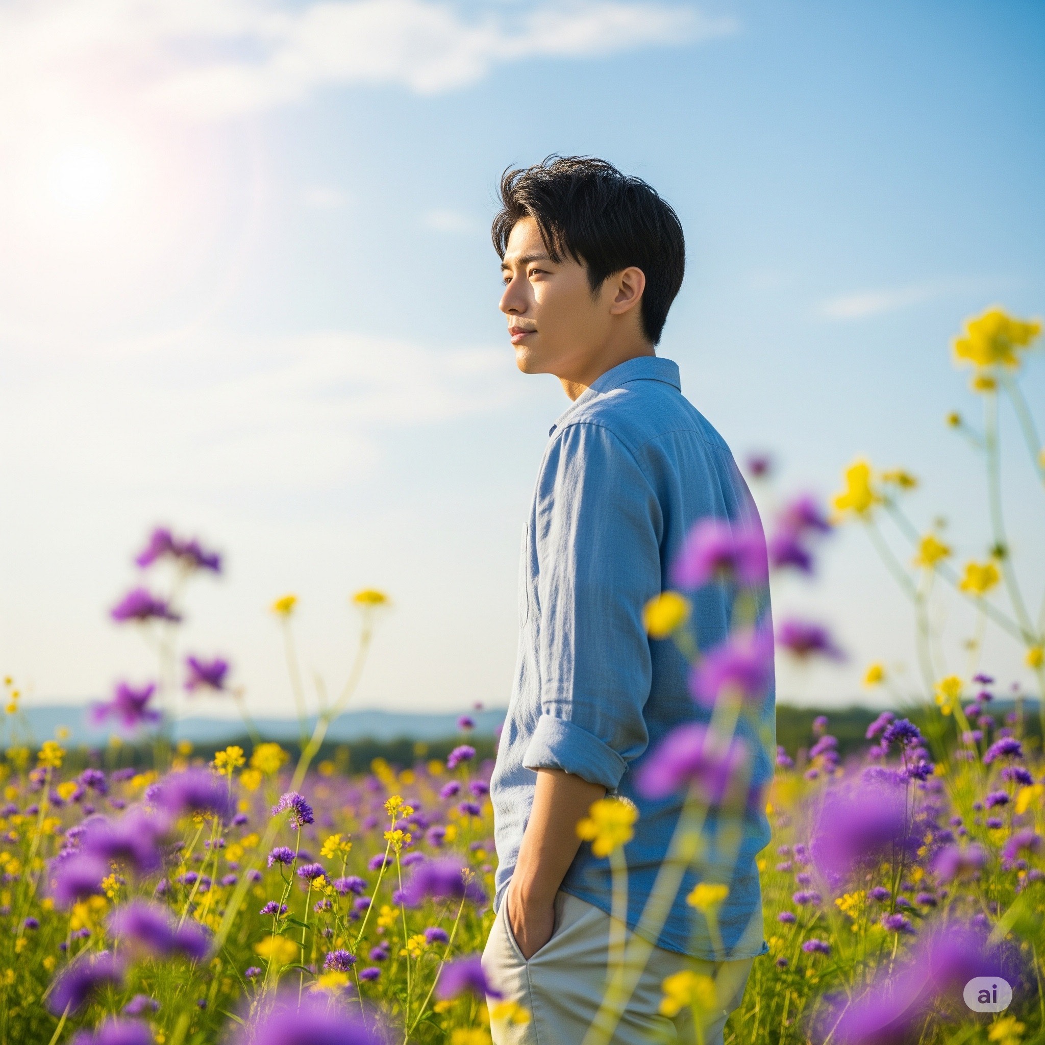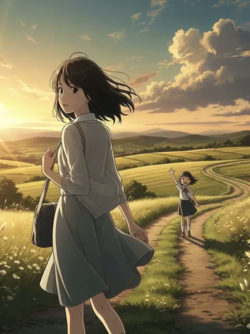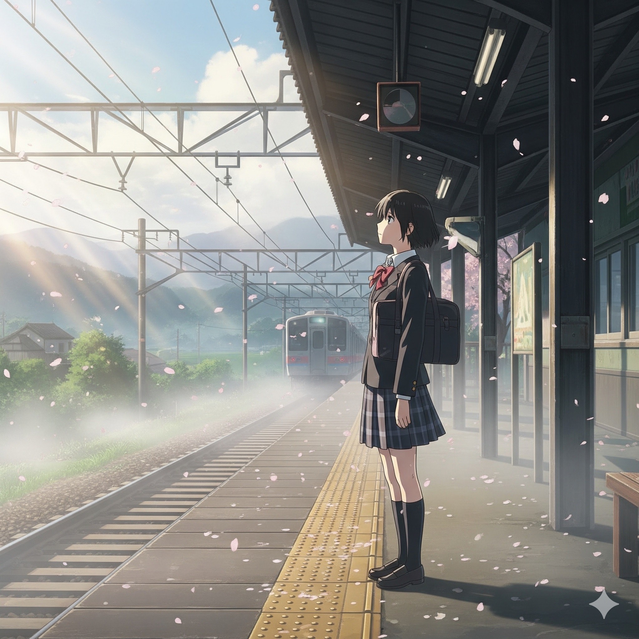 Warm, nostalgic J-Pop with acoustic guitar as the main instrument, gentle drums, and subtle piano layers, The arrangement should be light and airy, with a slightly lo-fi texture to feel intimate, as if sung in a small room, The vocals should be conversational, expressive, and slightly raw — not overly polished — to keep the emotional closeness, A touch of reverb to give space, but keep it warm and organic, Tempo: mid-slow, swaying like a spring breeze