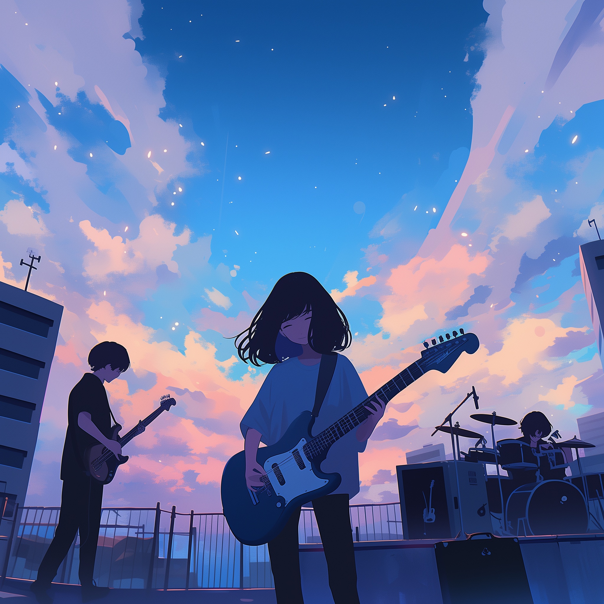 indie rock, math rock, odd time signature, a fusion of experimental dub and classical music, the track starts with spacious drums and warm bass, layered with atmospheric synths and steelpan, polyrhythm, The standard band set—guitar, bass, drums, keys—explores offbeat rhythms, poly Soft female Japanese vocals float gently over swirling textures, ‑guitar solo