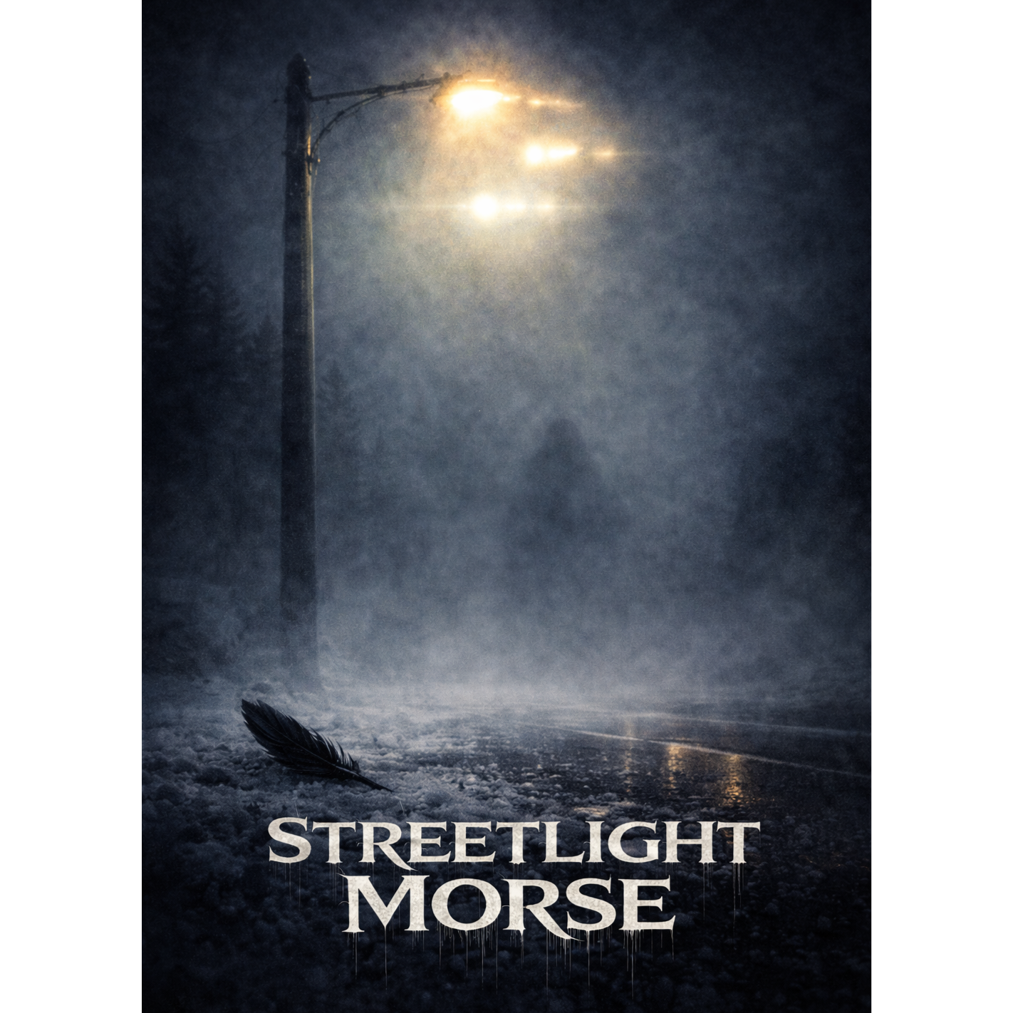 Cinematic deathcore, 100–180 BPM, massive downtuned 8-string riffs, tight modern mix, orchestral low strings + brass hits (no choir), eerie synth drones, streetlight electrical hum, winter wind foley, sub drops, crushing breakdowns, only harsh vocals (guttural lows + high screams), 4:35 runtime