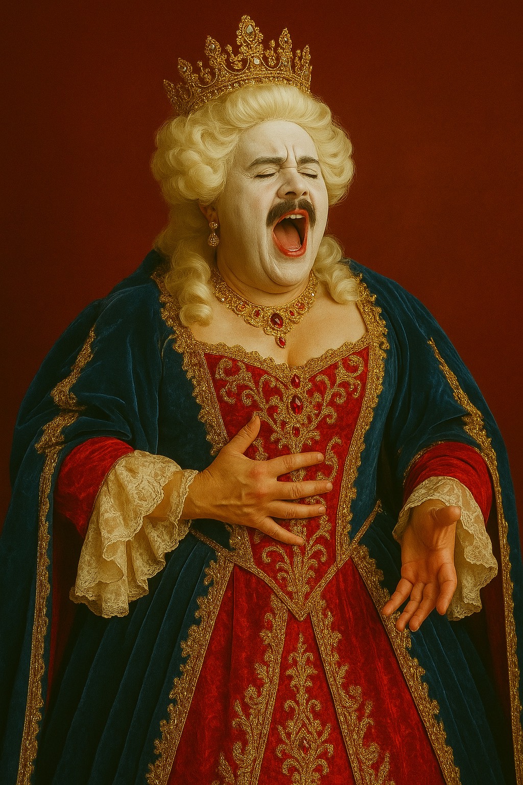 opera, grand opera, 72 bpm, rubato, full orchestra, strings winds brass timpani, harp arpeggios, concert hall reverb, bel canto technique, lyric soprano or dramatic tenor lead, baritone and bass support, chorus ensemble entries, recitative to aria contrast, legato phrasing, expressive vibrato, tasteful portamento, wide dynamics, heroic climaxes, elegant cadences, clear diction, ‑gregorian chant, ‑gregorian choir, ‑chant, ‑schola, ‑unison male choir, ‑organ drone, ‑cathedral reverb, ‑hard autotune, ‑autotune, ‑pitch correction heavy, ‑vocoder, ‑robotic tuning, ‑shouted chant