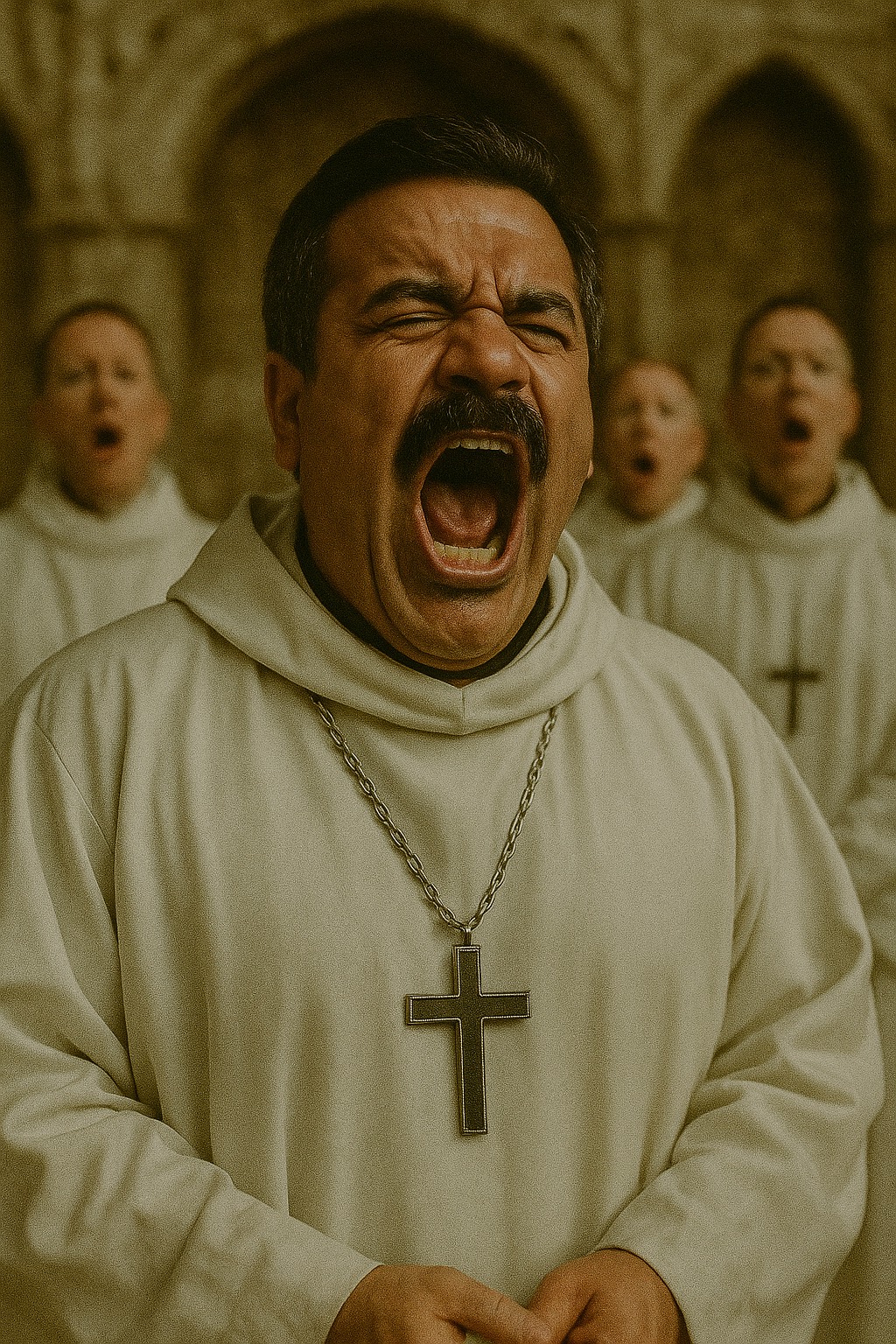 gregorian chant, choral, 68 bpm, free time feel, unison male schola, dorian mode, hard autotune, shouted chant delivery, open vowel tone, organ drone 16 foot and 8 foot, cathedral reverb long tail, clear diction, minimal hand drum pulse optional, solemn monumental vibe, no modern drums, no synth leads, ‑drum and bass, ‑chiptune, ‑dnb, ‑chiptune bell, ‑breakbeat, ‑amen break, ‑fast breakbeats, ‑two step, ‑reese bass, ‑neuro, ‑jump up, ‑liquid, ‑chiptune, ‑8 bit, ‑8-bit, ‑square wave, ‑triangle wave, ‑triangle bell, ‑pulse width, ‑bitcrush, ‑downsample, ‑game fx, ‑video game arps