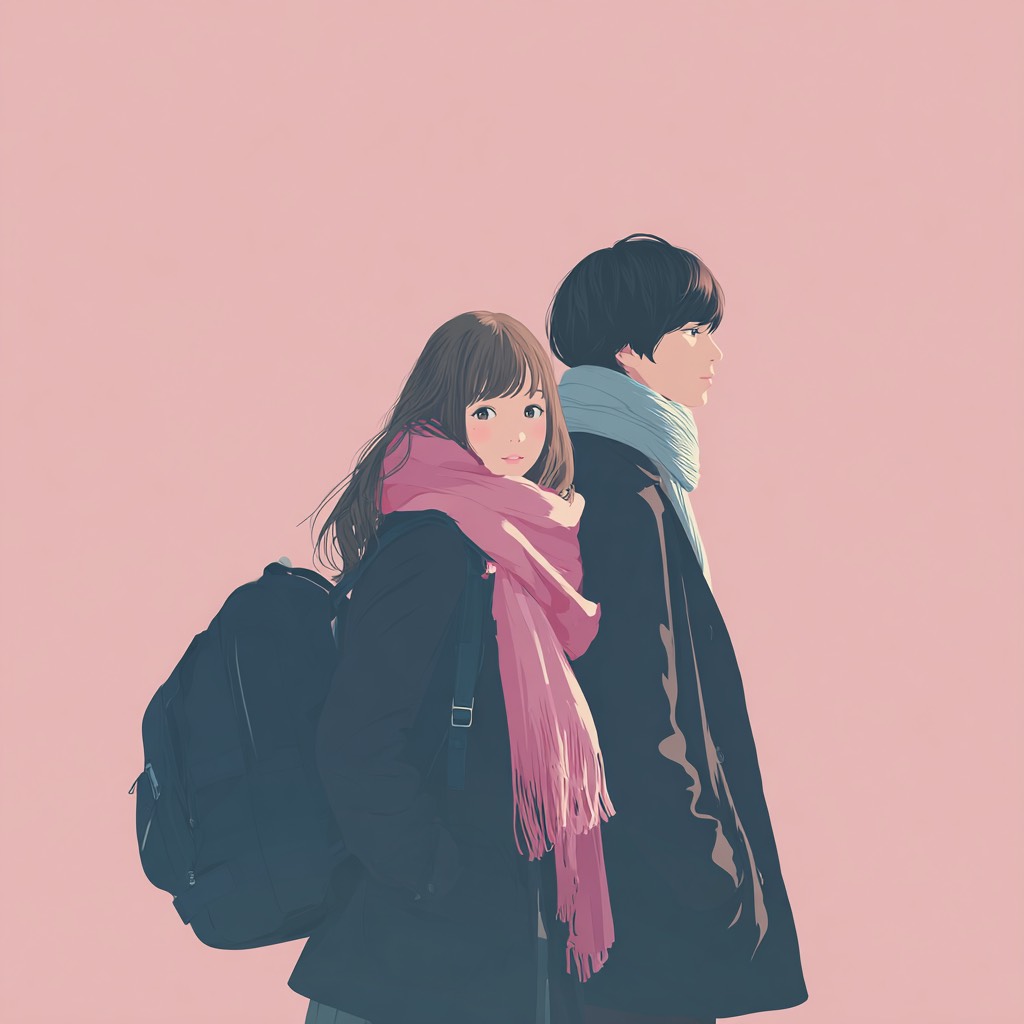 A city night wrapped in neon glow and winter air, The groove is steady and warm, carried by soft beatbox pulses and a rounded bass line that feels like headlights passing on wet asphalt, The lead voice begins close and intimate, almost whispered against cinematic vocal space, Harmonies shimmer like reflections on glass, slowly widening, Sweetness and ache drift together through the verses, until the final chorus opens fully—bright, emotional, and fearless—like confessing love beneath glowing streetlights with no turning back
