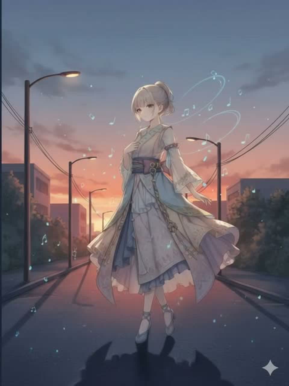 School Idol Pop, Dreamy J-Pop, cute female idol vocal, youthful and sweet, slightly nasal charm, soft emotional warmth, airy whisper tone in night sections, sparkling synths, light electric piano, plucked guitar, gentle pop drums with claps/snaps, subtle tambourine, neon-style shimmer FX, wide backing vocals in choruses, layered harmonies, bright D Major tonality, uplifting and soft romantic atmosphere, nostalgic night glow, gentle city night ambience, clean and transparent mix, U87-style sweet condenser vocal, light compression preserving dynamics, soft reverb bloom 1–3 s, gentle stereo widening in choruses, energetic but not aggressive, catchy melodic hooks, subtle dance rhythm, dreamy and sparkling, idol-stage presence, hopeful and cheerful mood, emotional story arc, innocence to first love, after-school transition, Tokyo night feeling, sparkling and clean, ‑hum, ‑low frequency rumble, ‑muffled sound, ‑distortion, ‑over-compression, ‑harsh sibilance, ‑overly bright or edgy, ‑metallic harshness, ‑piercing tones, ‑shrill, ‑unpleasant artifacts, ‑scratchy sound, ‑gritty textures, ‑crackling, ‑dark minor tonality, ‑hard rock, ‑metal, ‑aggressive drums, ‑lo-fi noise, ‑clipping, ‑forest motifs, ‑flower motifs, ‑fish motifs, ‑romantic clichés, ‑overly cinematic strings, ‑sad or gloomy atmosphere, ‑dull synth, ‑reverb overkill, ‑echoey clutter, ‑aggressive pitch modulation, ‑noise, ‑fuzz, ‑scratchy vocal, ‑rough timbre