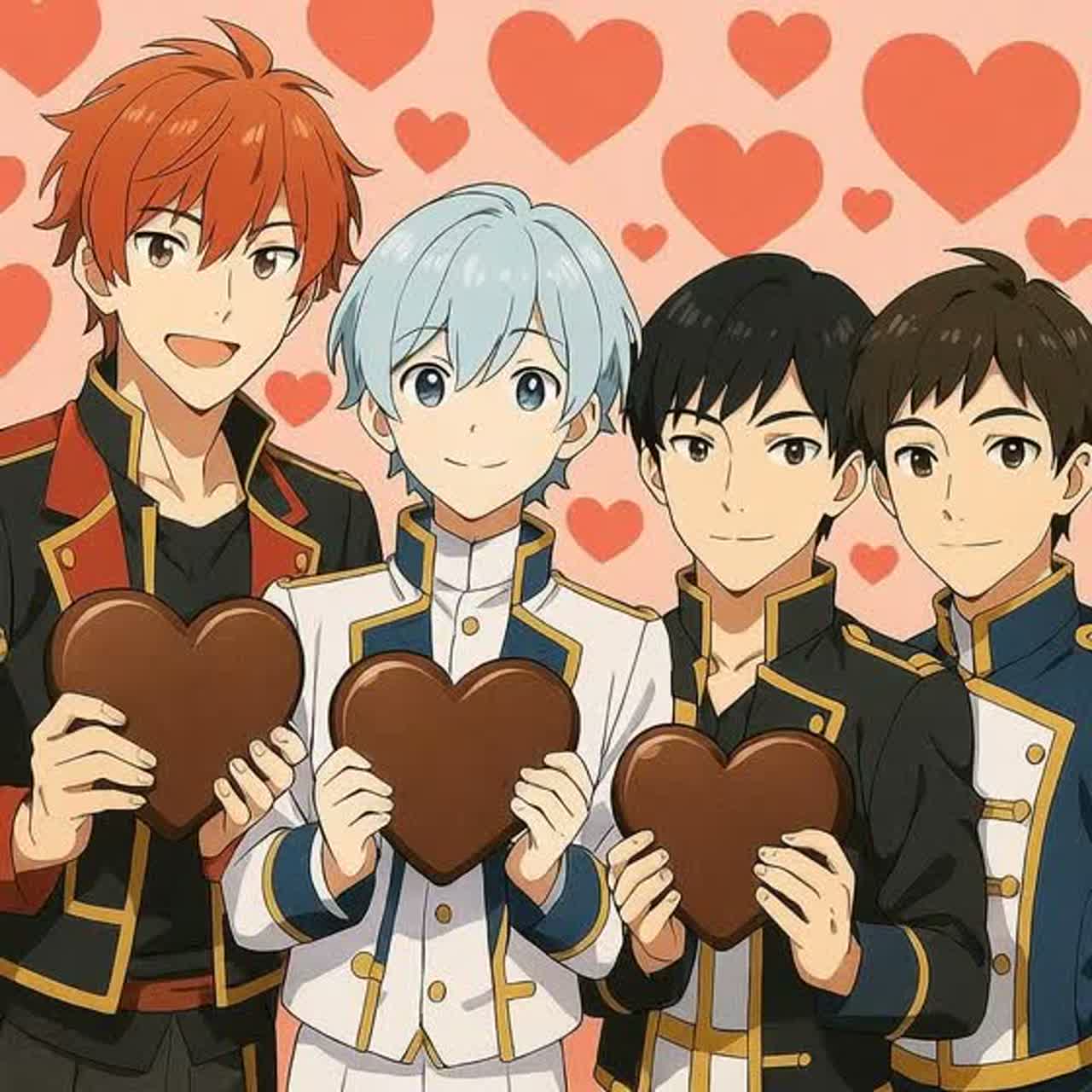 Pops, melody, four youth men idol unit in perfect balance, up tempo with emotional harmonies are around 144 BPM, people watching "raspberry, blueberry, blackberry and chocolate", cool and cute music, electric guitar, acoustic guitar, keyboards, acoustic piano, synthesizer programming, background vocal, the youth and bittersweet, the chorus repeats for emotional impact and the energetic, full sound, and dynamic rhythm, ‑female vocal