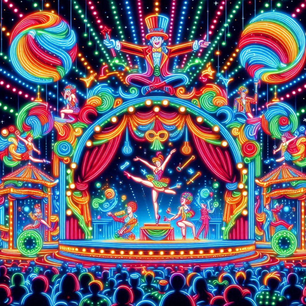 psychedelic electropop, techno pop, synth, kids song, happy song, march, Electrical parade, electone, harpsichord, fanfare, funny noise, multiplet, Cheery atmosphere