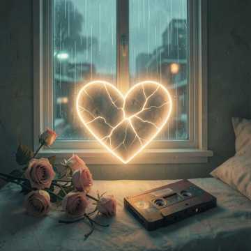 Chill sad emotional track with soft Rhodes chords, fingerpicked nylon guitar, warm sub-bass, and sparsewith slow trance vibes tubular bell kick-snare drums brushed with vinyl crackle, Breathly vocal layers, wide tape delay, detuned piano accents, and low-pass ambient pads create a tender lo-fi indie R&B haze, intimate and restrained
