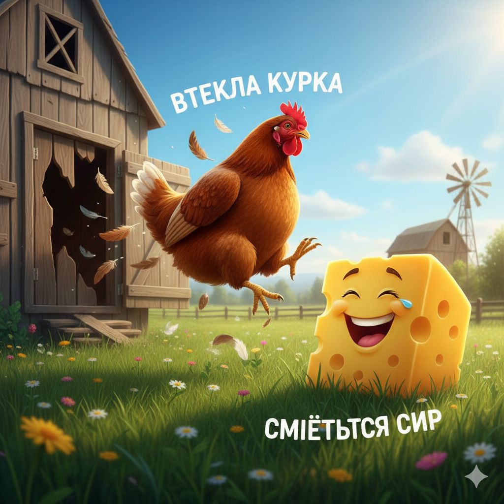 Втекла курка, сміється сир