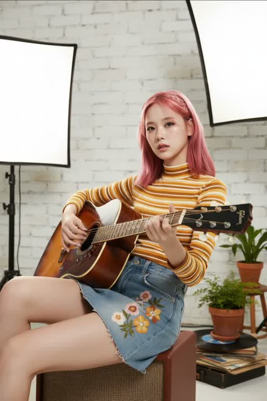 Jenapop acoustic punk pop ballad, ~124 BPM, key D major, Female vocalist with rich emotional falsetto and warm chest voice, high-pitch centered, close-mic intimacy, Verses delivered in whispery chest tone with soft storytelling phrasing, natural chest-to-falsetto transitions, Chorus features soaring falsetto, layered harmonies, addictive English hook, Bridge highlights emotional high-note climax with controlled belting and vibrato, Instruments: close-mic fingerstyle acoustic guitar intro, fast strum acoustic with string scratch and body hits, light punk groove drum (tight kick, snare), subtle bass support, Interlude led by rhythmic acoustic guitar percussion only, Mixing: ultra-clean and intimate vocal front, tight low-end, expanded stereo chorus, fully mastered warm yet punchy sound, Arrangement: Intro–Verse–Pre-Chorus–Chorus–Interlude–Verse2–Bridge–Chorus–Outro, ‑male